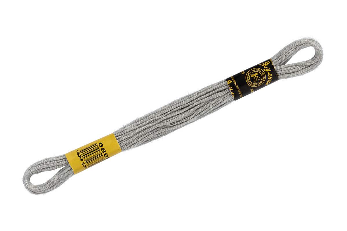 Нитки для вышивания " ПНК им. Кирова" мулине 100% мерсеризованный хлопок 8 м №6806 серый