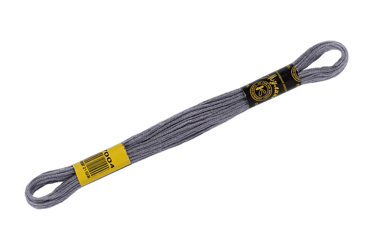 Нитки для вышивания " ПНК им. Кирова" мулине 100% мерсеризованный хлопок 8 м №7004 серый